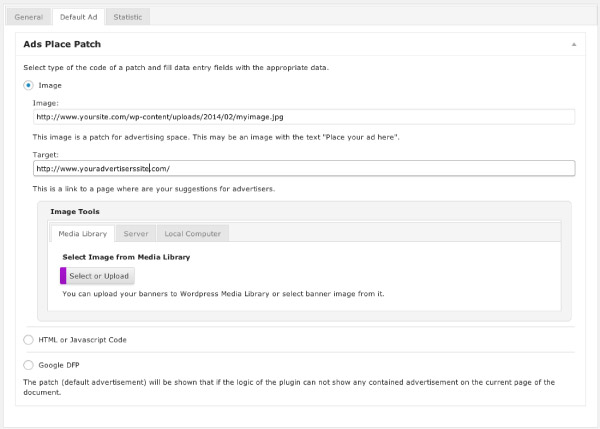 Then, click on the "Default Ad" tab to set which ad will display only if no other ads have been assigned to this "Ad Place".